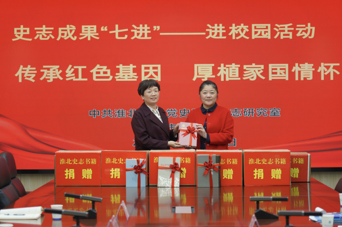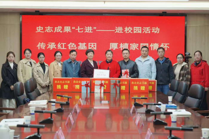 活动中,市委党史和地方志研究室与淮北一中共建“史志读书角”,并向学校赠送《淮北市志》《淮北市红色资源概览》《中国共产党淮北历史》等各类史志书籍近400册,涵盖了革命历史、地方文化、民俗风情等多个领域,为师生系统了解淮北历史、感悟红色文化提供了鲜活教材。