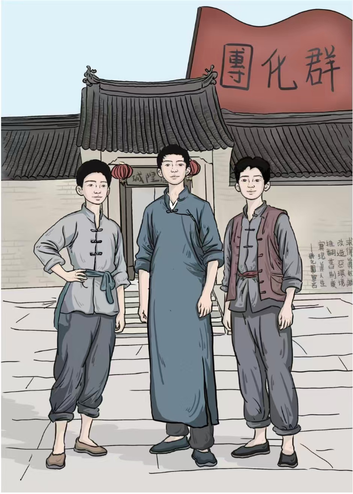 群化团一经成立,便以雷霆之势发出时代的呐喊。他们将《群化团宣言》 全文挥毫书写于一面赤色大旗上,并高悬于临涣城隍庙大门外,猎猎旌旗迎风招展。这份宣言不仅犀利剖析了社会积弊的根源,更是振聋发聩地提出改造社会现实的革命纲领,呼唤志同道合的青年“大家联合起来,推翻旧的社会制度,共建人类美好社会”,实现“物质、社会、精神”的理想生活。